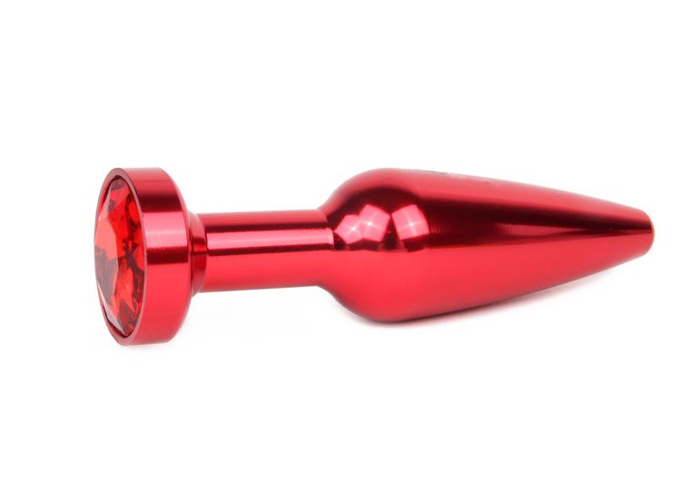 Удлиненная коническая гладкая красная анальная втулка с красным кристаллом