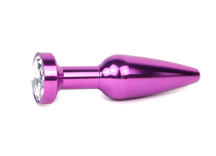 Удлиненная коническая гладкая фиолетовая анальная втулка с прозрачным кристаллом