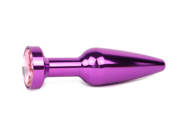 Удлиненная коническая гладкая фиолетовая анальная втулка с розовым кристаллом