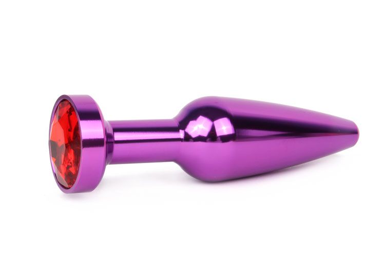 Удлиненная коническая гладкая фиолетовая анальная втулка с красным кристаллом