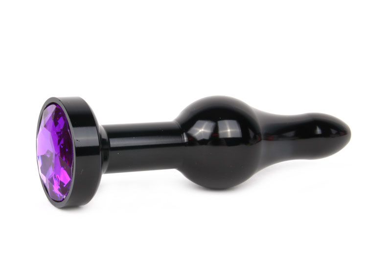 Удлиненная шарикообразная чёрная анальная втулка с кристаллом фиолетового цвета Anal Jewelry Plug ZBCK-04 (10,3 см)