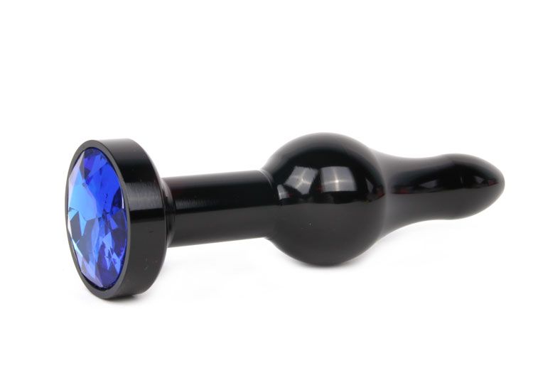 Удлиненная шарикообразная чёрная анальная втулка с синим кристаллом Anal Jewelry Plug ZBCK-13 (10,3 см)