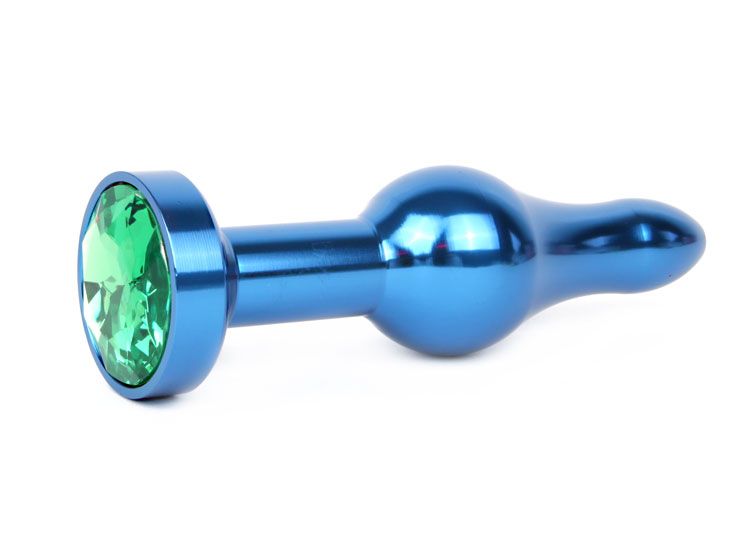 Удлиненная шарикообразная синяя анальная втулка с зелёным кристаллом