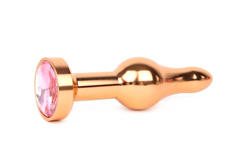 Удлиненная шарикообразная золотистая анальная втулка с розовым кристаллом