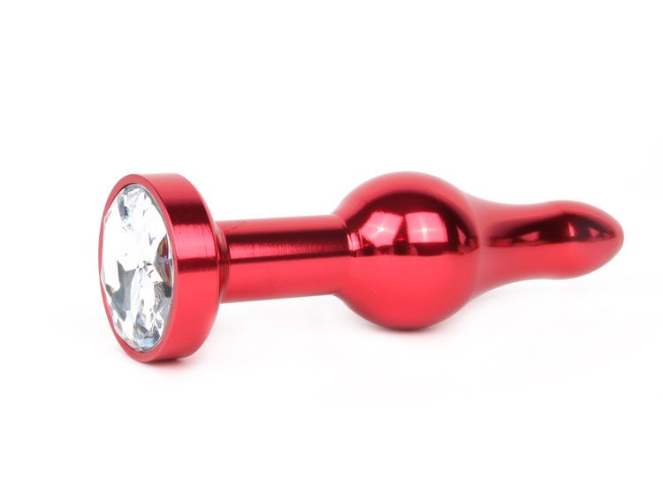 Удлиненная шарикообразная красная анальная втулка с прозрачным кристаллом