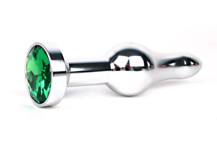 Удлиненная шарикообразная серебристая анальная втулка с зелёным кристаллом Anal Jewelry Plug ZSLV-07 (10,3 см)