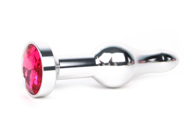 Удлиненная шарикообразная серебристая анальная втулка с малиновым кристаллом