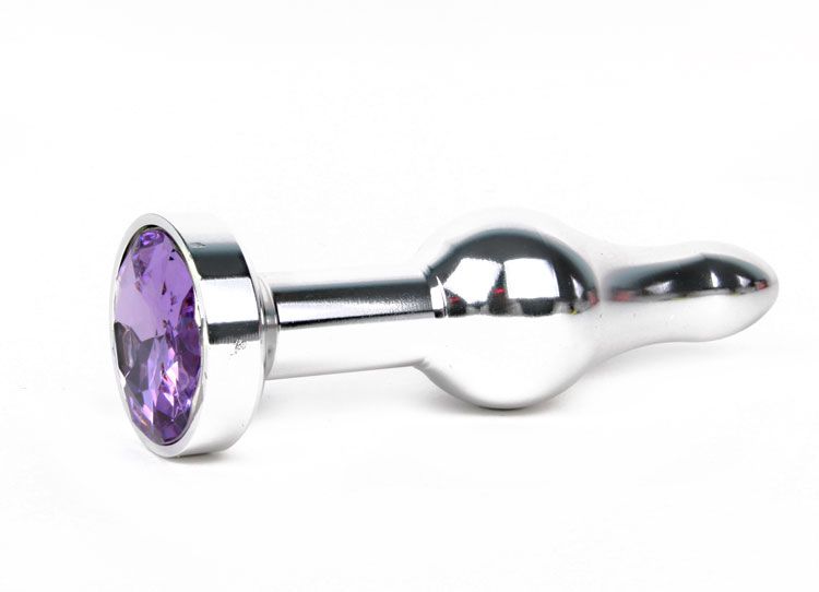 Удлиненная шарикообразная серебристая анальная втулка с сиреневым кристаллом