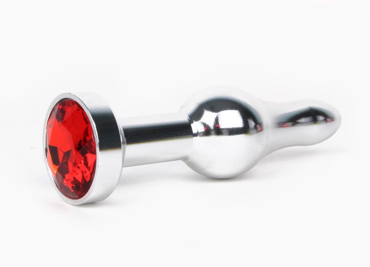 Удлиненная шарикообразная серебристая анальная втулка с красным кристаллом