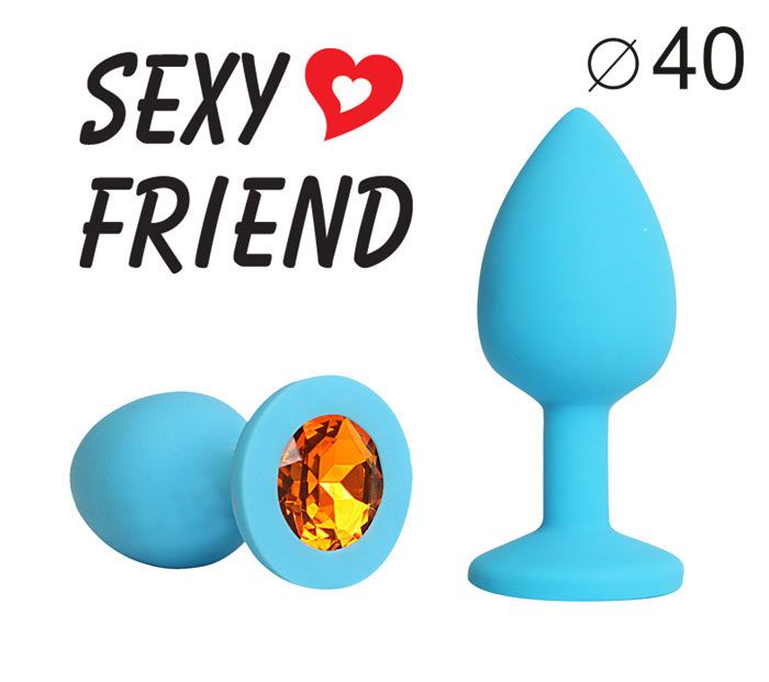 Голубая силиконовая анальная пробка с оранжевым кристаллом
