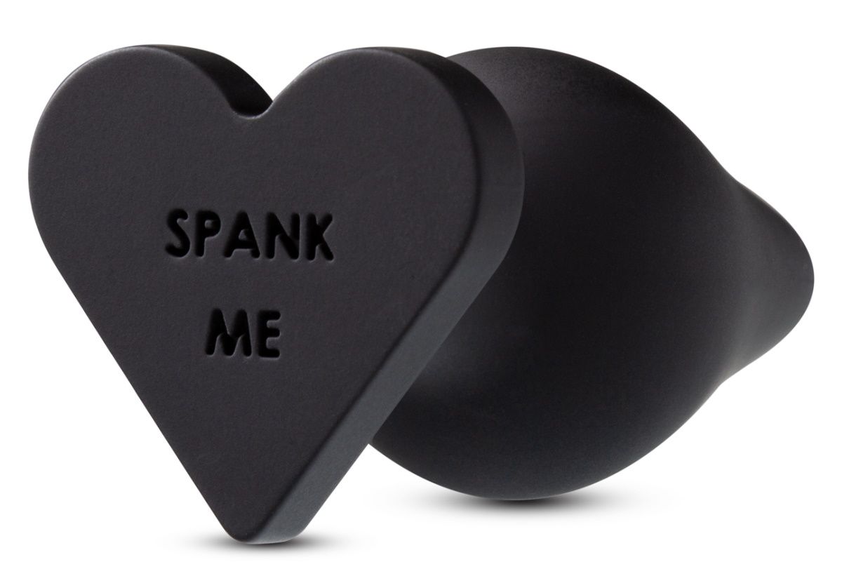 Чёрная анальная пробка с основанием-сердечком Blush Novelties Spank Me Butt Plug BL-95635 (8,5 см)