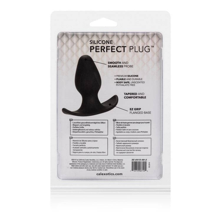 Классически оформленная для анального проникновения, Silicone Perfect Plug имеет достаточную для качественной стимуляции толщину, супер гладкую бесшовную поверхность и широкое надежное основание, предназначенное для безопасного введения.Плавно сужающаяся на кончике, Perfect Plug нежно набухает ближе к центру, растягивая и стимулируя чувствительное анальное отверстие. Оказавшись внутри, эластичный силиконовый конус обеспечивает захватывающее чувство приятного давления на нервные окончания заднего прохода. Удлиненная шейка ведет к плоскому крупному основанию с загнутыми вверх краями, которое добавляет изделию больше стабильности при размещении и увеличивает возможности маневрирования. Рабочая длина - 9 см.