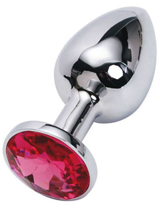 Серебристая анальная пробка с малиновым стразом Eroticon P3134M-02 (7 см)