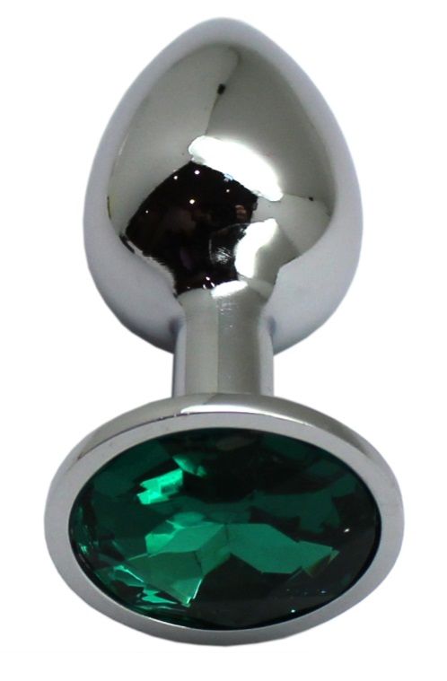 Серебристая анальная пробка с изумрудным стразом Eroticon P3404M-05 (7 см)