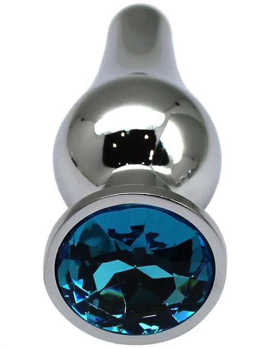 Серебристая анальная пробка с голубым кристаллом