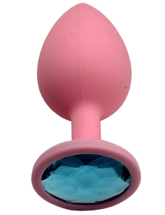 Розовая анальная пробка с голубым кристаллом