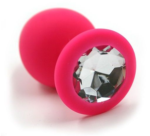 Анальная пробка из силикона розового цвета, размер M. Страз в основании круглой формы, выполнен из прозрачного стекла. Упакована в вельветовый мешочек для хранения. Вес - 46,5 граммов.