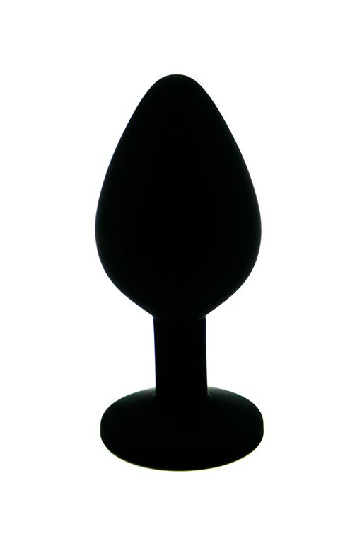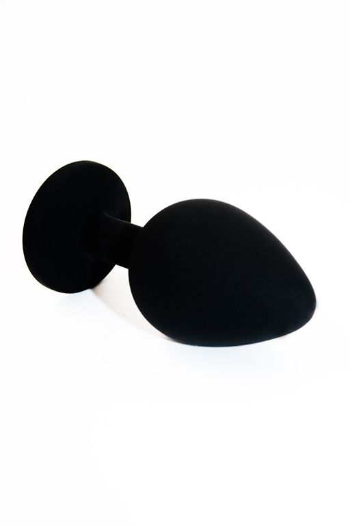 Анальная пробка из силикона черного цвета, размер M. Страз в основании круглой формы, выполнен из стекла желтого цвета. Упакована в вельветовый мешочек для хранения. Вес - 46,5 граммов.