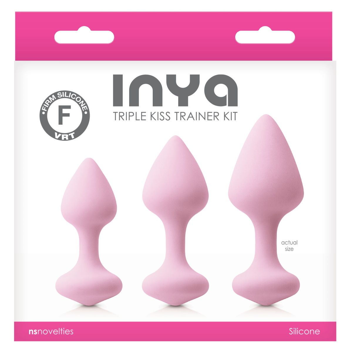 Все начинается с поцелуя. INYA Triple Kiss Trainer Kit включает в себя ассортимент из трех прочных, шелковисто-гладких силиконовых анальных пробок, сужающихся для легкого введения и удобного расположения. Длина большой пробки – 9,6 см., диаметр – 3,8 см. Длина средней пробки – 8,3 см., диаметр – 2,5 см. Длина малой пробки – 7,6 см., диаметр - 2,5 см.