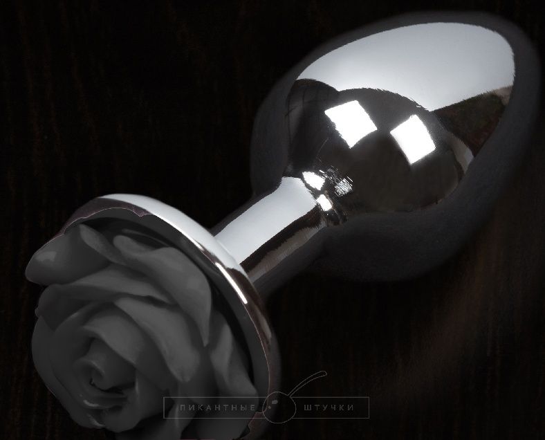 Серая анальная пробка с чёрной розочкой