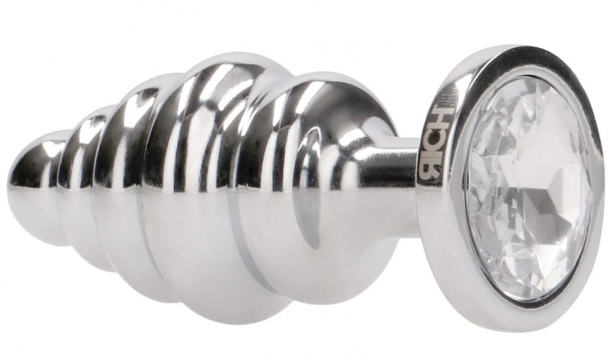 Ribbed Diamond Plug - роскошное маталлическое анальное украшение, состоящее из пяти ребер разного диаметра у проникающей части и декоративного украшения в виде кристалла, имитирующего бриллиант. Это настоящий шедевр металлургического искусства. Гладкая обтекаемая форма и небольшой закругленный кончик способствует комфортному проникновению и получению приятных тактильных ощущений. Идеальная игрушка, подходящая для сужения влагалища, подготовки к анальному сексу, украшению тела, температурных игр.