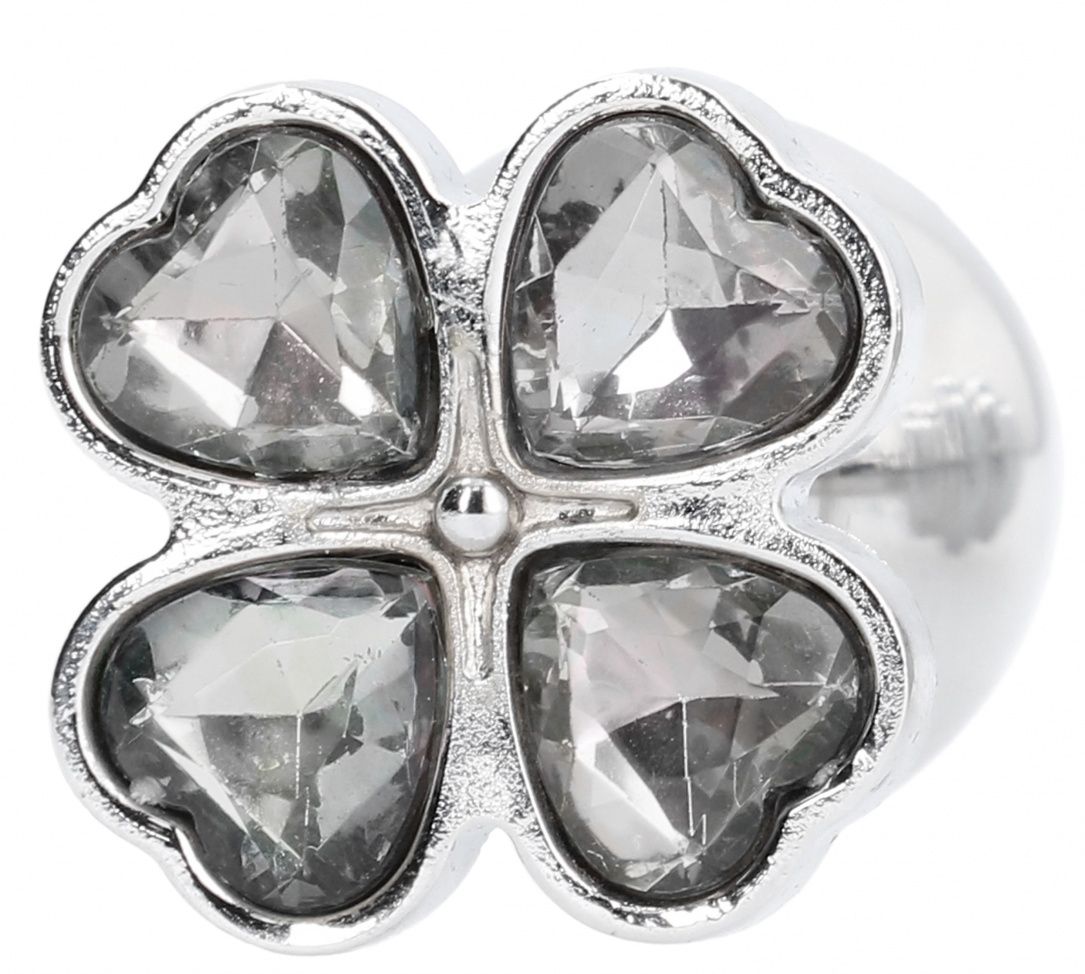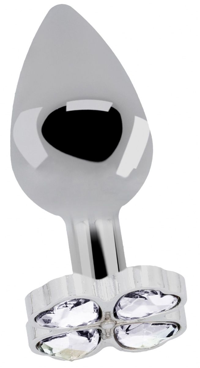 Серебристая анальная пробка с прозрачными кристаллами в форме клевера