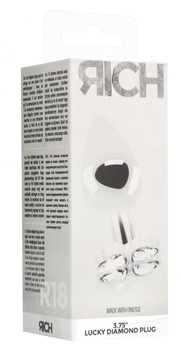 Серебристая анальная пробка с прозрачными кристаллами в форме клевера Shots Media BV RIC018SIL (9,5 см)