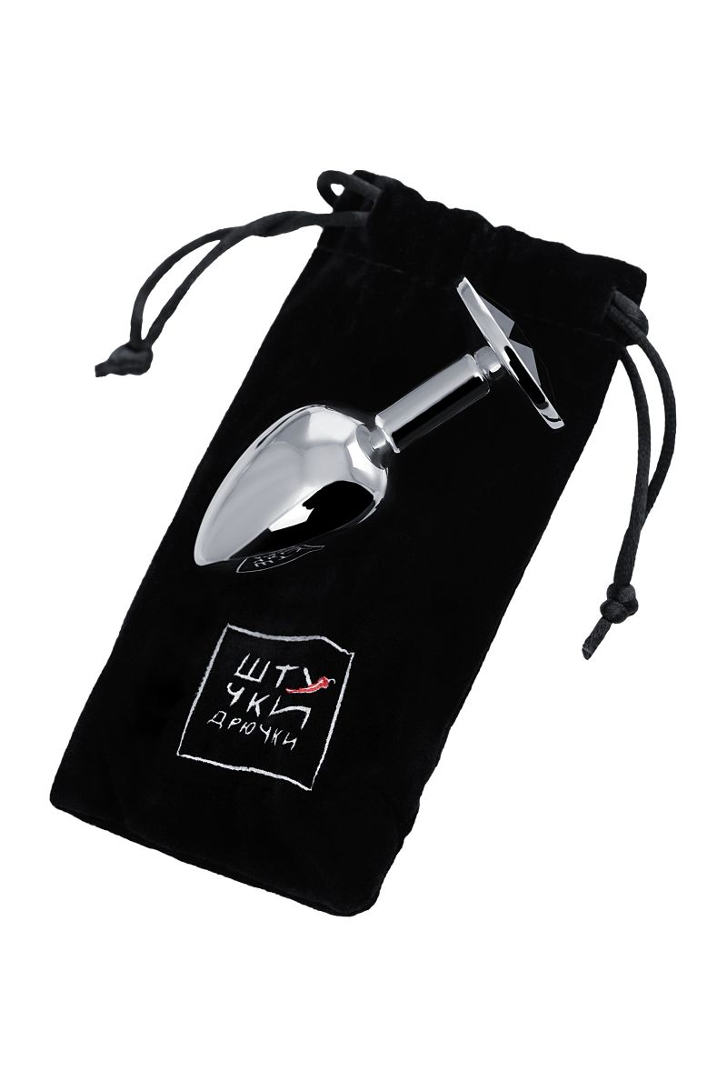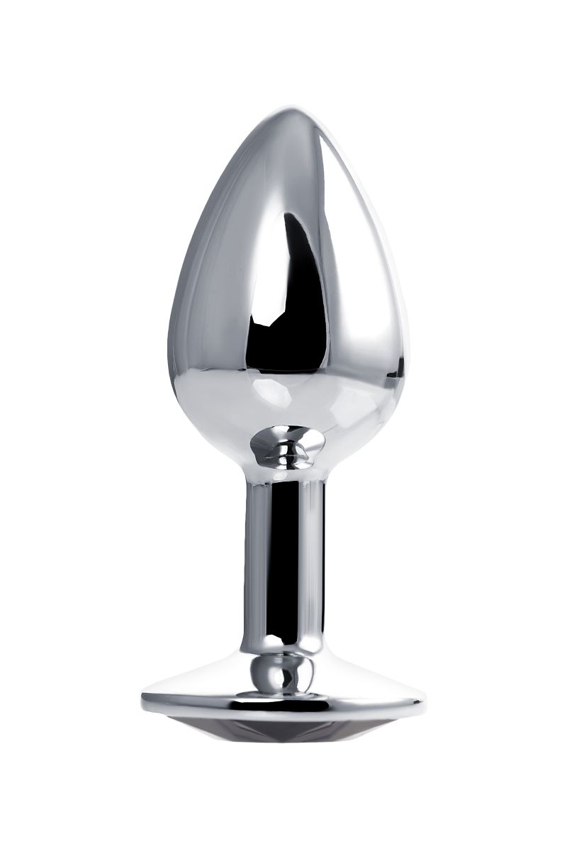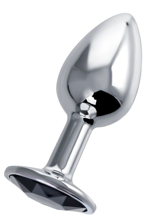 Серебристая гладкая коническая анальная пробка с чёрным кристаллом Штучки-дрючки 690106 (7 см)