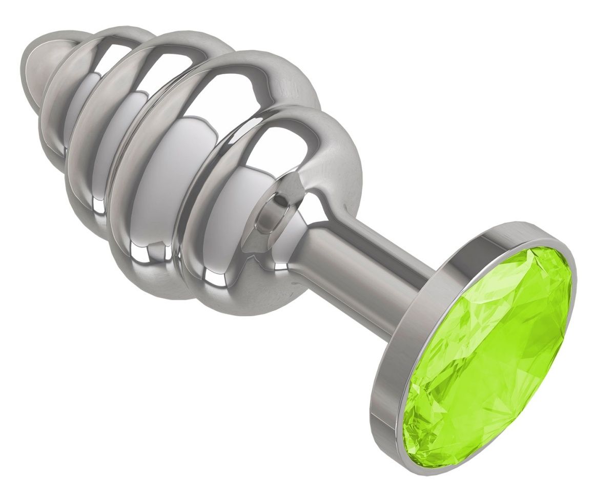 Серебристая спиралевидная анальная пробка с салатовым кристаллом Сумерки богов 515-12 LIME-DD (7 см)