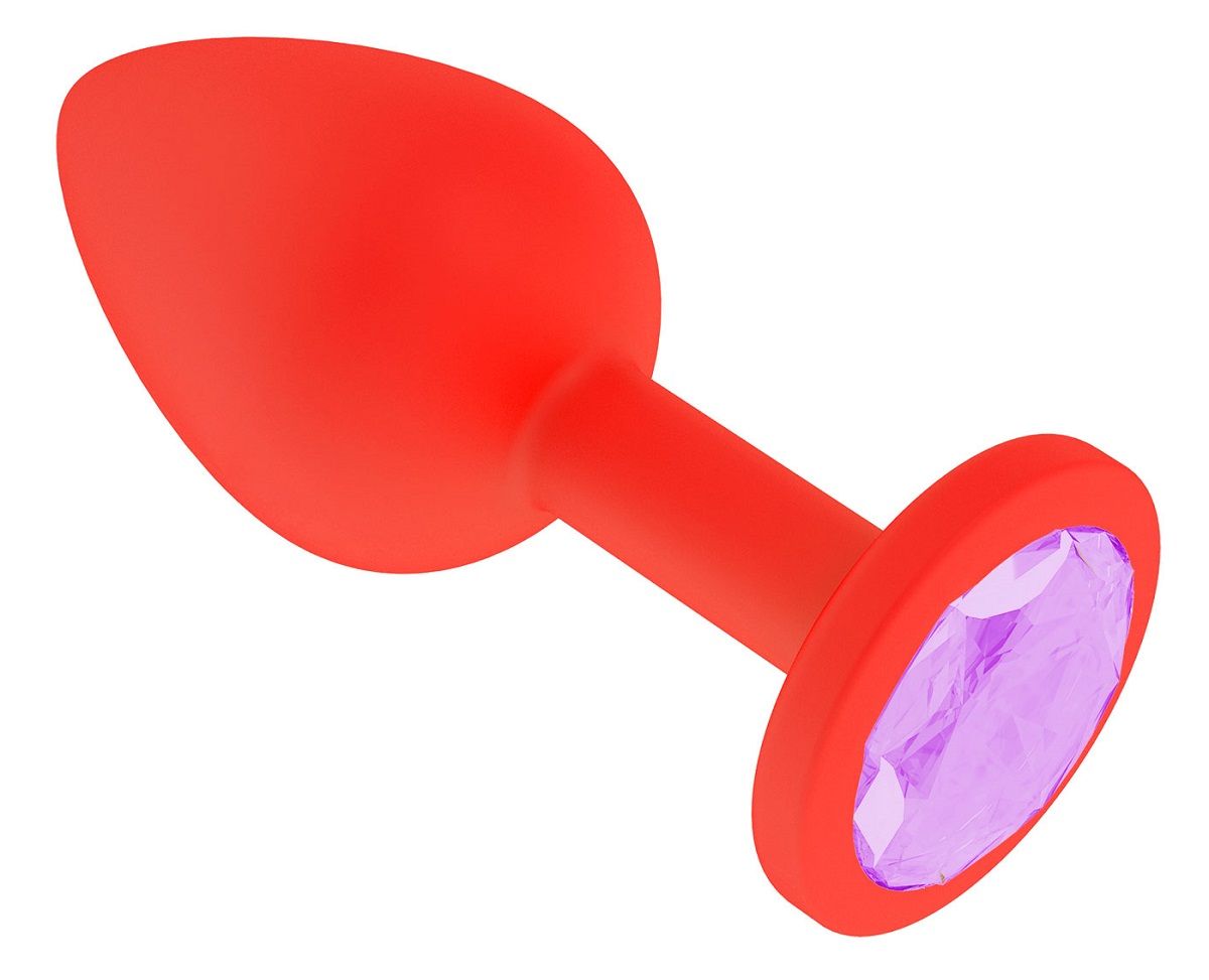 Красная анальная втулка с сиреневым кристаллом Сумерки богов 517-13 lilac-DD (7,3 см)