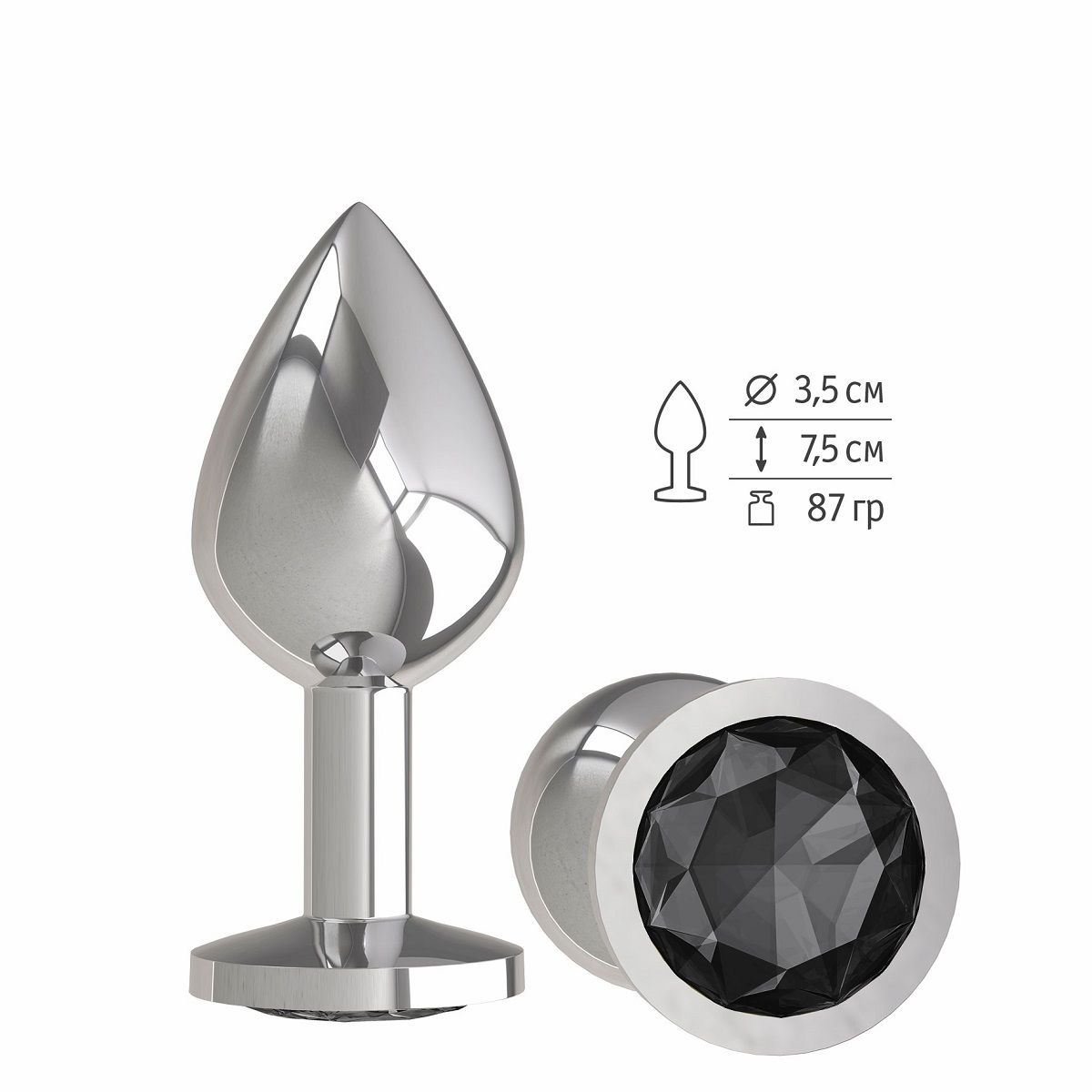 Серебристая средняя пробка с чёрным кристаллом Сумерки богов 523-09 black-DD (8,5 см)