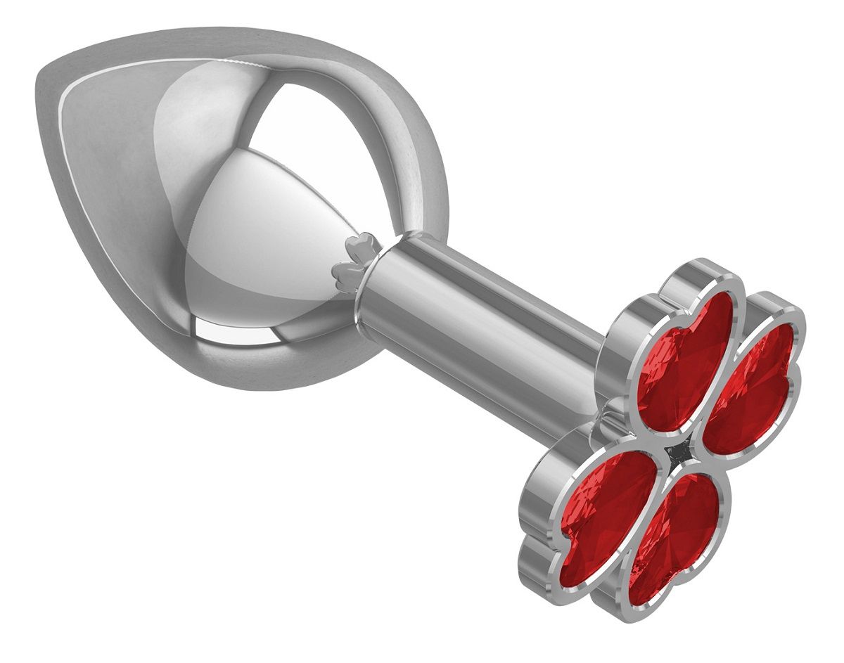 Средняя серебристая анальная втулка с клевером из красных кристаллов Сумерки богов 529-04 red-DD (8,5 см)