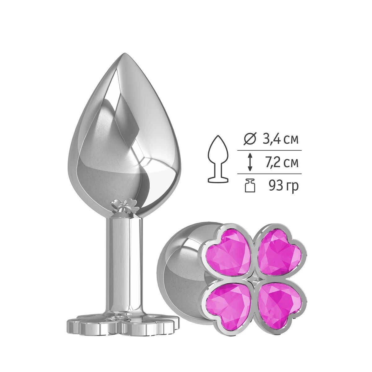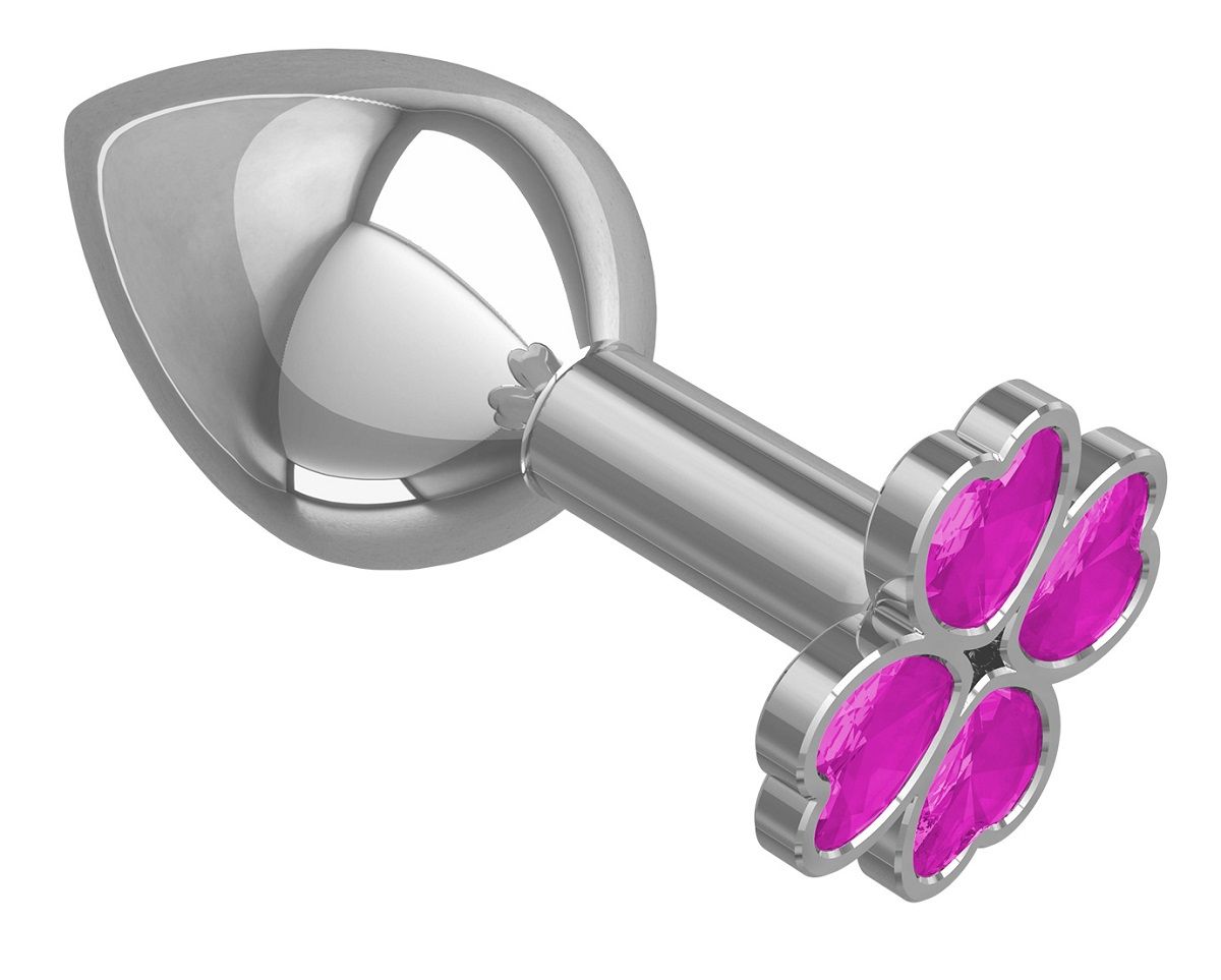 Средняя серебристая анальная втулка с клевером из розовых кристаллов