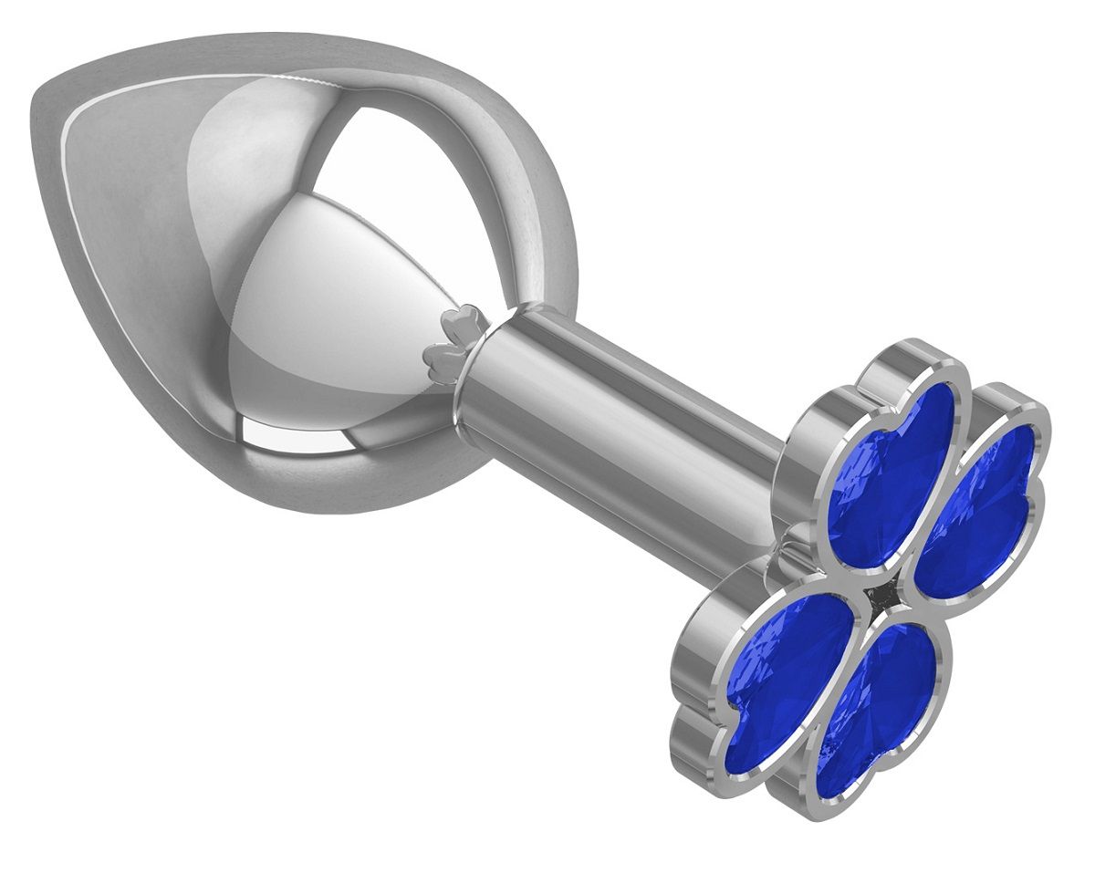 Средняя серебристая анальная втулка с клевером из синих кристаллов