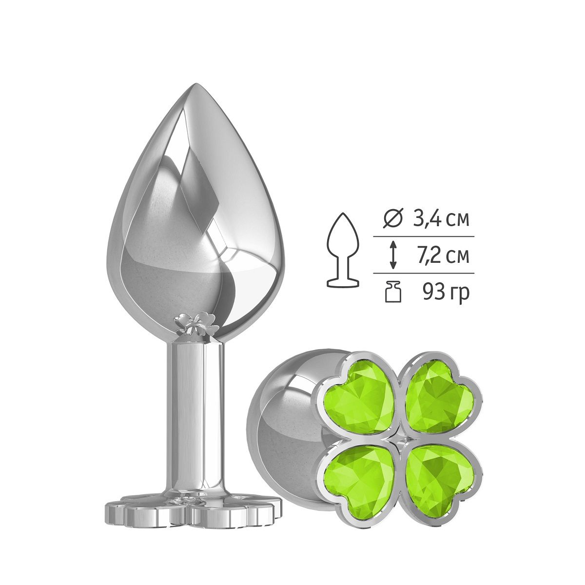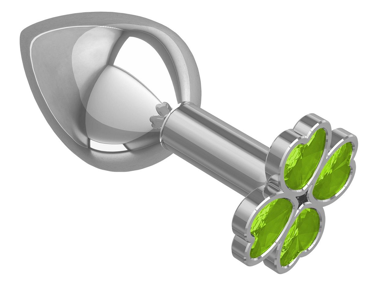 Средняя серебристая анальная втулка с клевером из лаймовых кристаллов