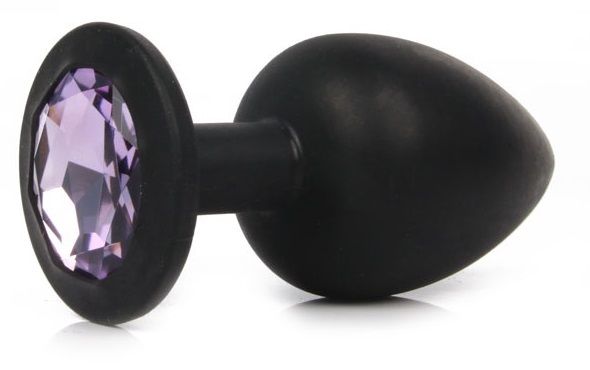 Чёрная силиконовая пробка с сиреневым кристаллом размера S. Вес - 30 гр.размера S