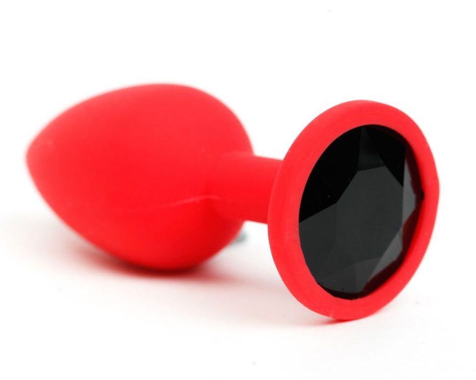 Красная силиконовая анальная пробка с чёрным стразом