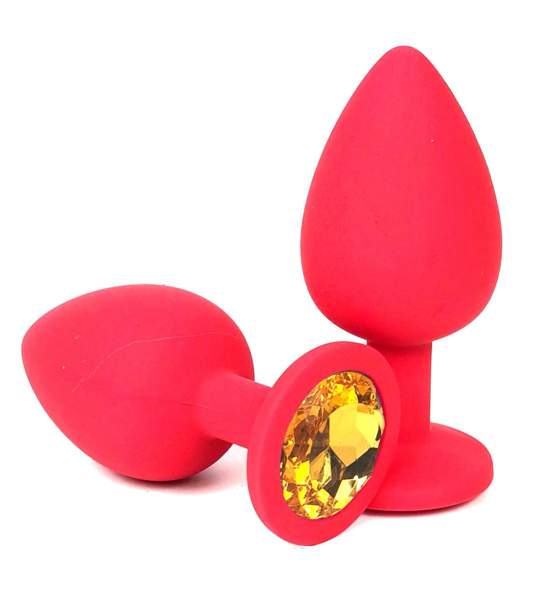 Красная силиконовая анальная пробка с оранжевым стразом