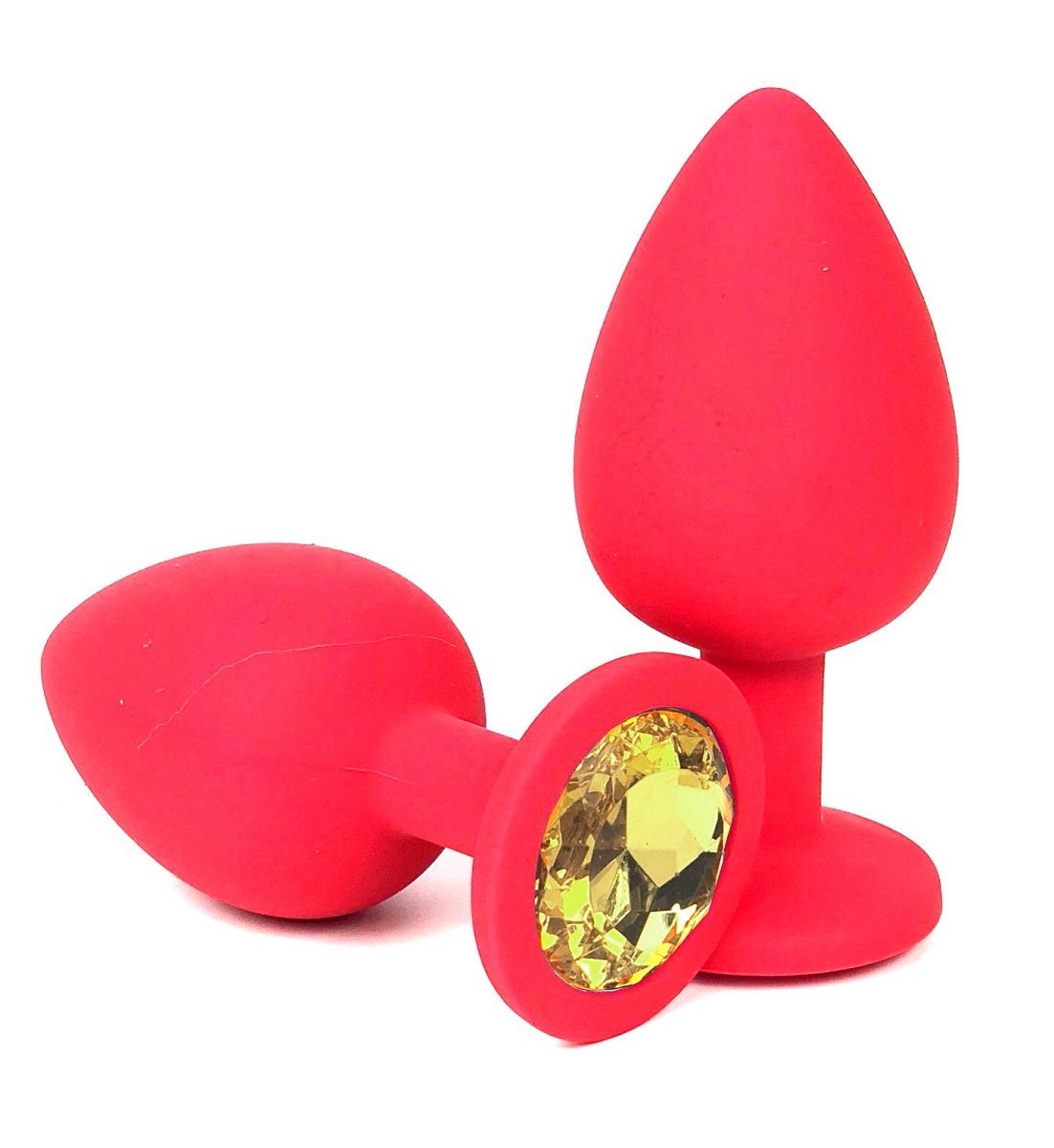Красная силиконовая анальная пробка с жёлтым стразом Vandersex 122-3RY (9,2 см)