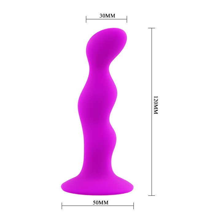Анальная пробка имеет форму, приближенную к анальной цепочке. На теле стимулятора есть 3 рельефных утолщения для массажа стенок ануса и головку изогнутой формы для стимуляции простаты или точки G у женщин. Имеет в основании присоску, что позволяет использовать его на любой гладкой поверхности без помощи рук. Сделан из гладкого шелковистого материала, очень приятного на ощупь. Водонепроницаем, что делает его привлекательным при использовании в душе или бассейне. Сам массажер компактного размера, можно взять с собой на отдых. Диаметр основания - 5 см.