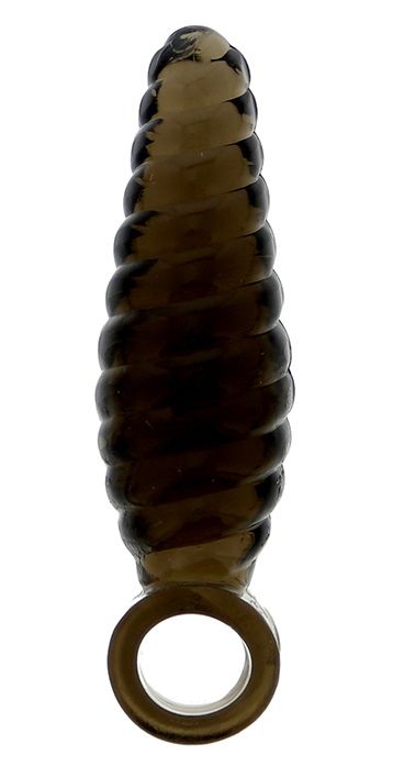 Дымчатый массажер со спиралевидным рельефом GOOD VIBES FINGER SLEEVE ANAL PROBE. Надевается на пальчик при помощи колечка в основании.