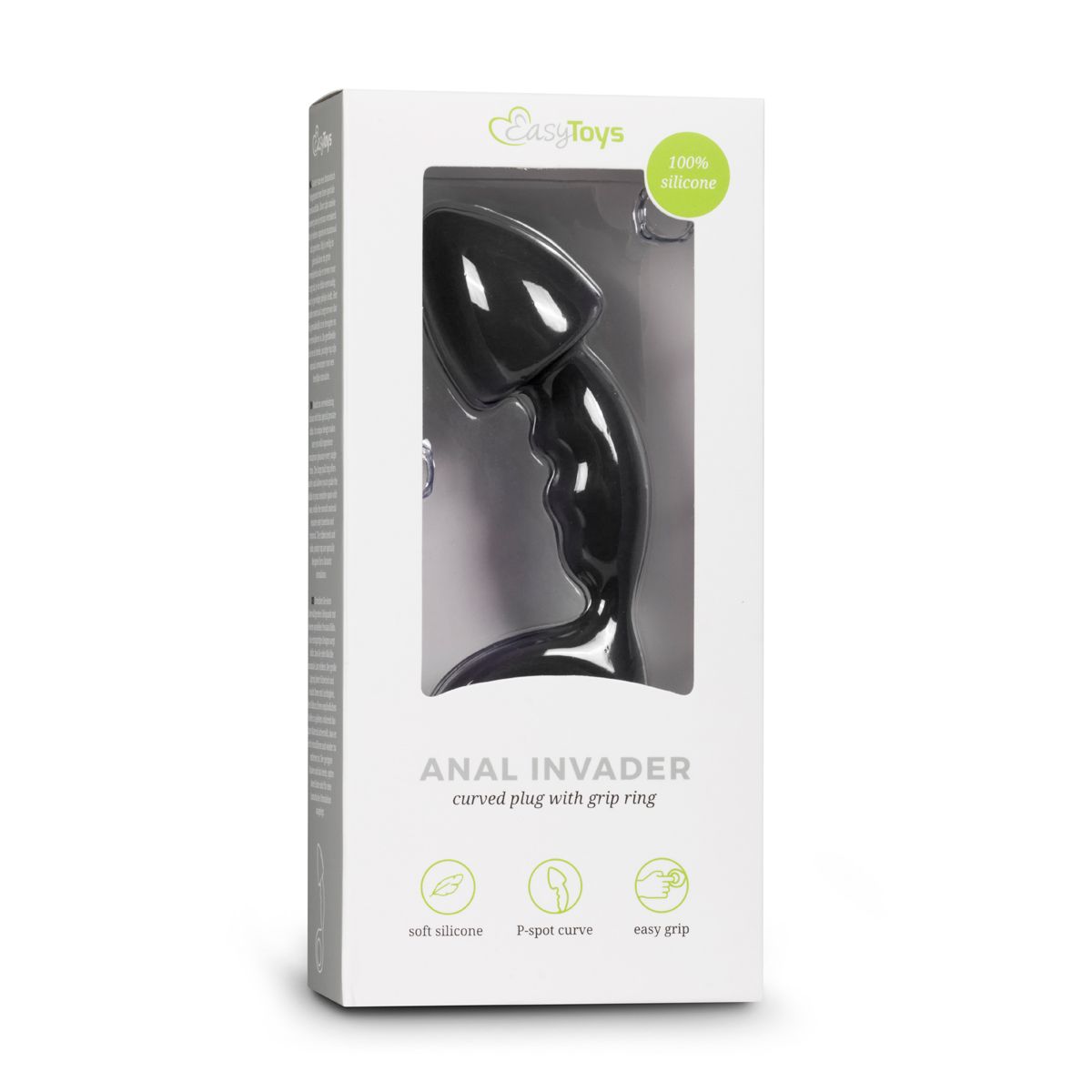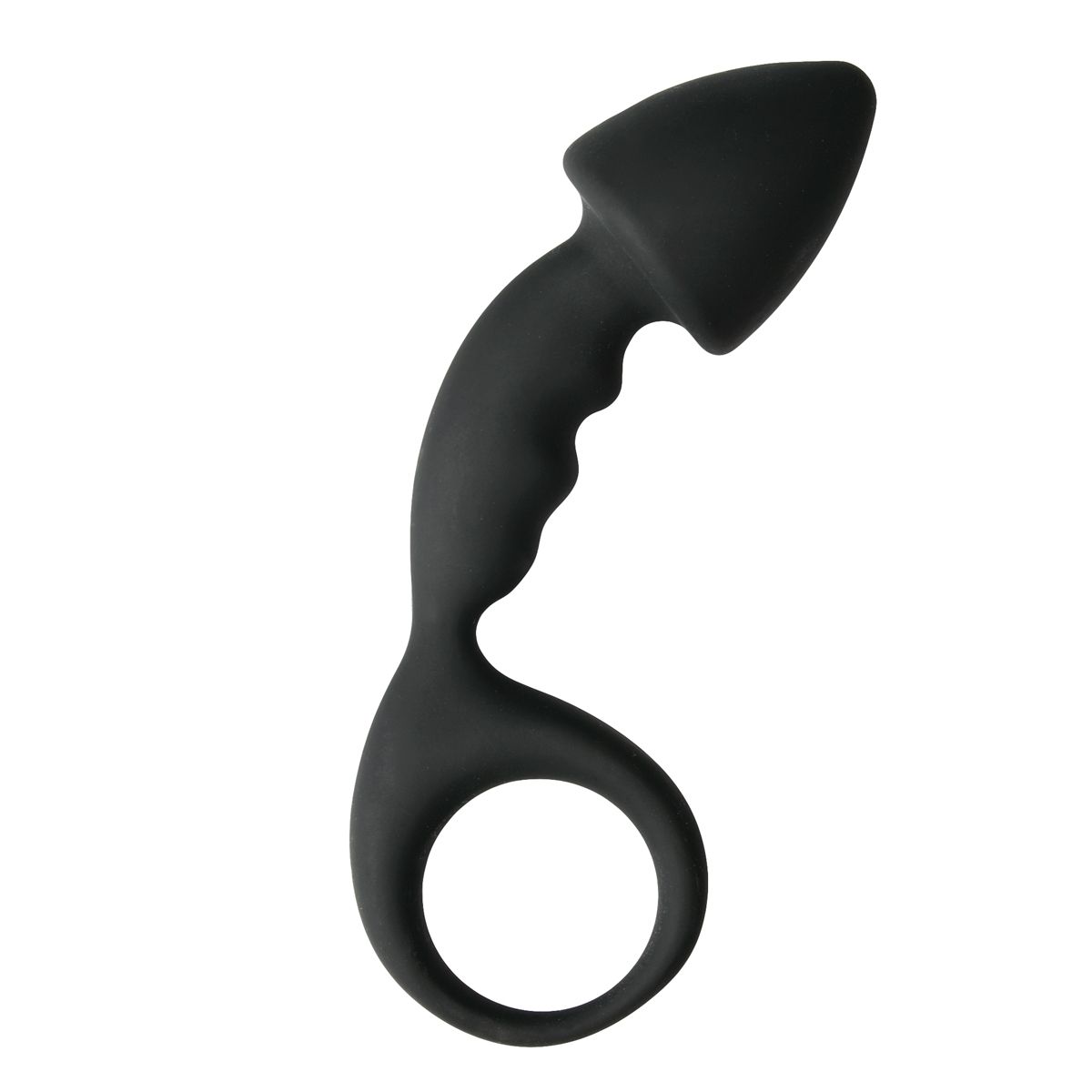 Черный анальный стимулятор Anal Invader с удобной ручкой-кольцом для управления. Нежнейший силикон. Рабочая длина - 8 см.
