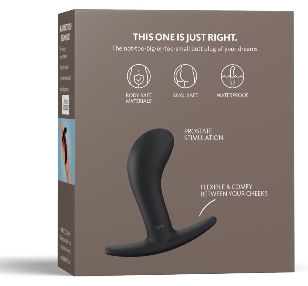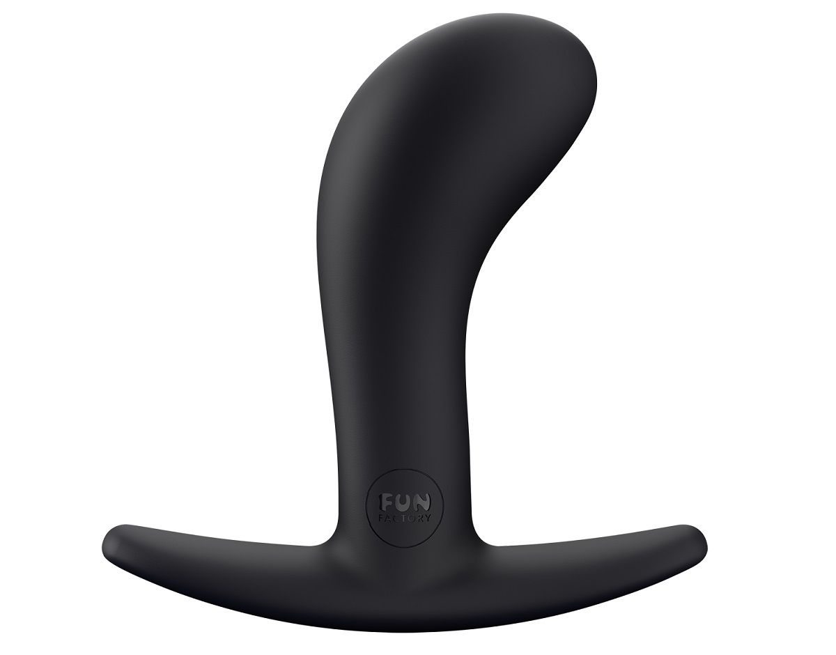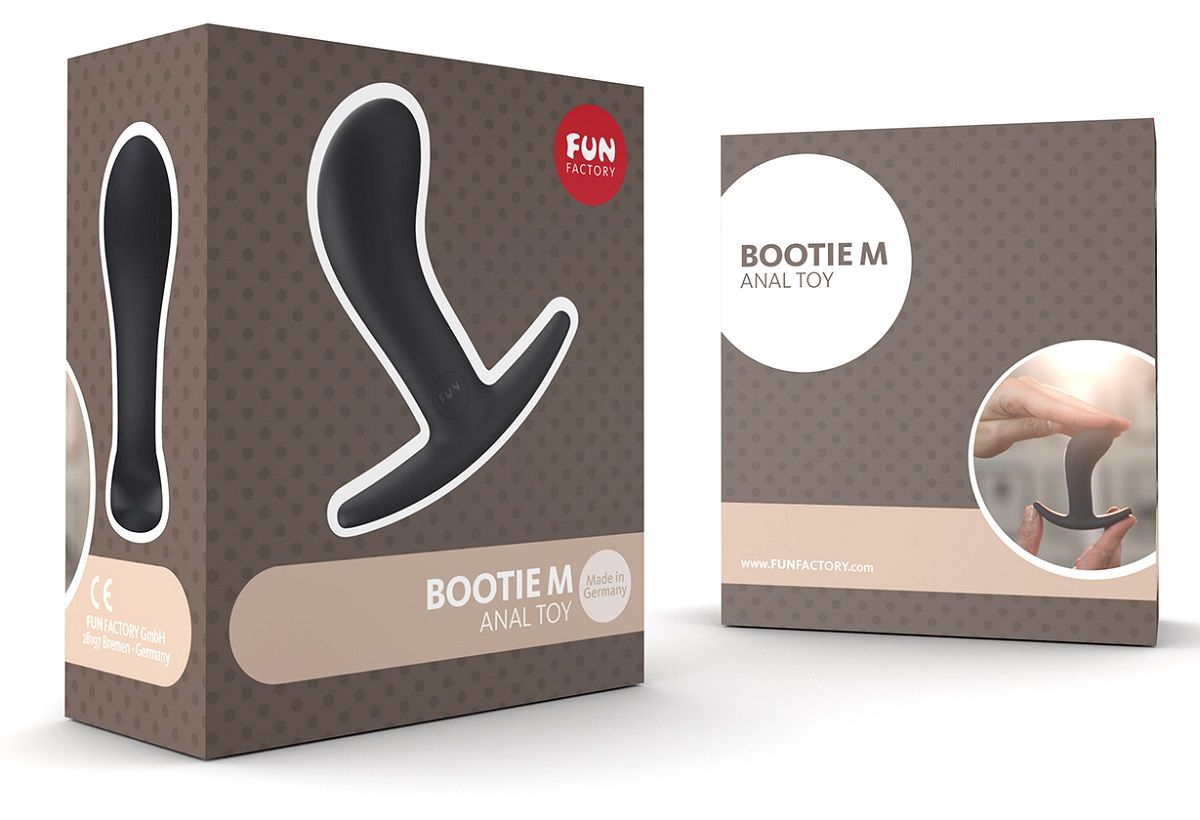 Bootie M – средняя, если говорить о размерах, анальная пробка в линейке Bootie от Fun Factory. Черный стимулятор благодаря широкому основанию подходит для ношения и гарантированно обеспечивает безопасность при анальном использовании: игрушку просто невозможно протолкнуть в попку полностью. Чуть загнутый и увеличенный кончик способствует лучшему воздействию на предстательную железу у мужчин. Bootie M в меру упруга, очень приятна на ощупь, поскольку сделана из высококачественного медицинского силикона без запаха. Рабочая длина - 8 см.