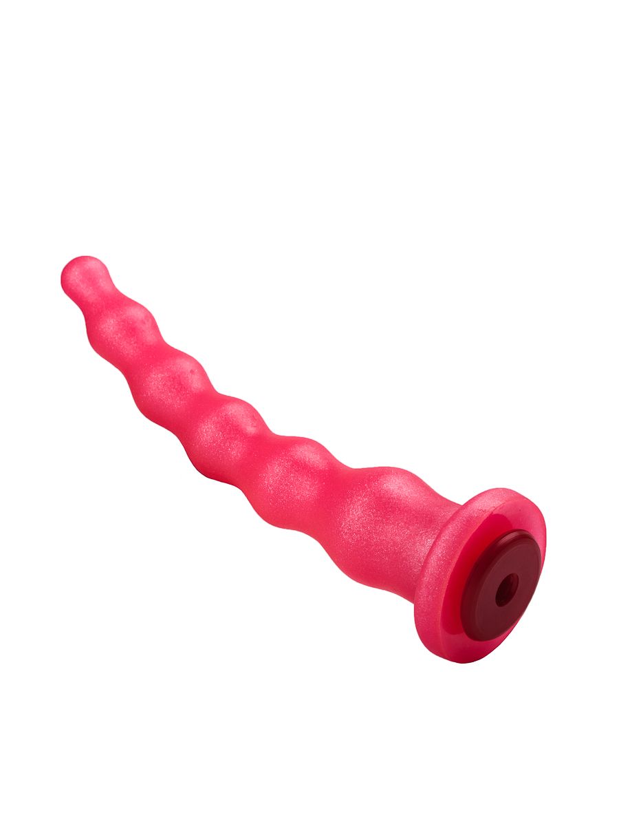 Розовый удлинённый анальный стимулятор с шариками. Можно использовать с креплением в виде кольца или применять отдельно, без страпона.
