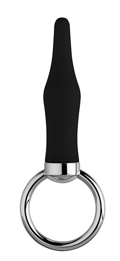Чёрная коническая анальная пробка с кольцом