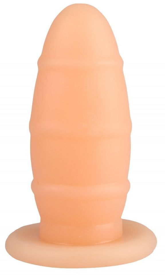 Телесная овальная анальная втулка с ребрышками