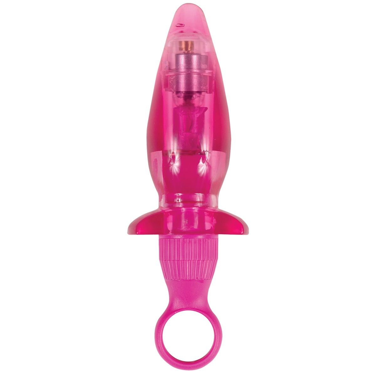 Лиловая анальная вибровтулка из TPR. Имеет силиконовое основание-ограничитель и пластиковое кольцо для удобства использования. Рабочая длина - 9,4 см. Батарейки в комплект не входят.