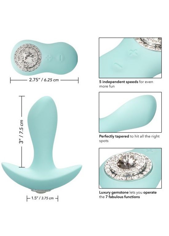 Побалуйте себя и дорогих вам людей драгоценным подарком! Pave Audrey – изумительная перезаряжаемая анальная пробка для ношения с пультом дистанционного управления из высококачественного гипоаллергенного силикона, выполненный в стиле товаров от Тиффани. Нежный цвет игрушек (особый оттенок голубого), ставший визитной карточкой этой знаменитой ювелирной компании, и кнопки управления из сверкающих кристаллов, имитирующих бриллианты, излучает настоящий гламур «Старого Голливуда». Анальный стимулятор Audrey имеет плавный эргономичный изгиб и головку с округлым кончиком. Мощный мотор обеспечивает 7 функций равномерной интенсивной вибрации и 5 независимых скоростей. Анальная пробка имеет высококачественное атласное и ультра гладкое силиконовое покрытие Satin Finish, обеспечивающее насыщенные и гарантировано безопасные тактильные ощущения. Гибкая проникающая часть и анатомически изогнутое основание делает пробку совершенной для анальной стимуляции, позволяя носить ее внутри тела и использовать во время полового акта. Идеально подходит для украшения тела и сужения влагалища. Удобное сенсорное управление на пульте дистанционного управления дает возможность создавать 35 различных настроек. Анальная пробка вставляется в анус после предварительной подготовки. Для комфортности введения и получения максимально приятных ощущений можно использовать смазку на водной основе. Чтобы включить или выключить игрушку, необходимо нажать и в течение трех секунд удерживать кнопку питания, выполненную в виде украшения из хрусталя. Не требует синхронизации с пультом, она происходит автоматически. Анальная пробка заряжается через USB и может быть подключен практически в любом месте, просто подсоедините идущий в комплекте шнур к совместимому порту компьютера или USB-адаптера (приобретается отдельно), а противоположный конец со штекером к игрушке. Рабочая длина - 7,5 см. Время зарядки - 2 часа. Время работы - 1 час.