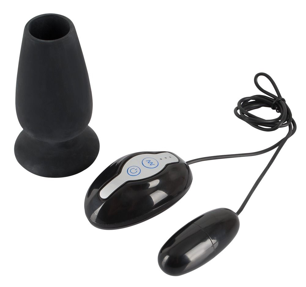 Туннельная анальная пробка аккуратно вставляется и надежно удерживается сфинктером на месте. Для плавного введения рекомендуется использовать смазку на водной основе. Теперь вы можете заглянуть внутрь или налить холодную или теплую жидкость через полый туннель. Чтобы предотвратить вытекание этих жидкостей, просто вставьте вибрирующее яйцо в отверстие туннеля. Тогда туннель не только закрывается, но и может быть настроен на вибрацию - 7 режимов вибрации можно легко контролировать с помощью проводного пульта дистанционного управления. Диаметр тоннеля - 2,5 см.