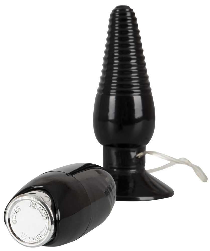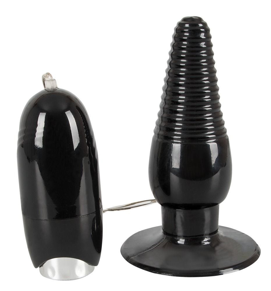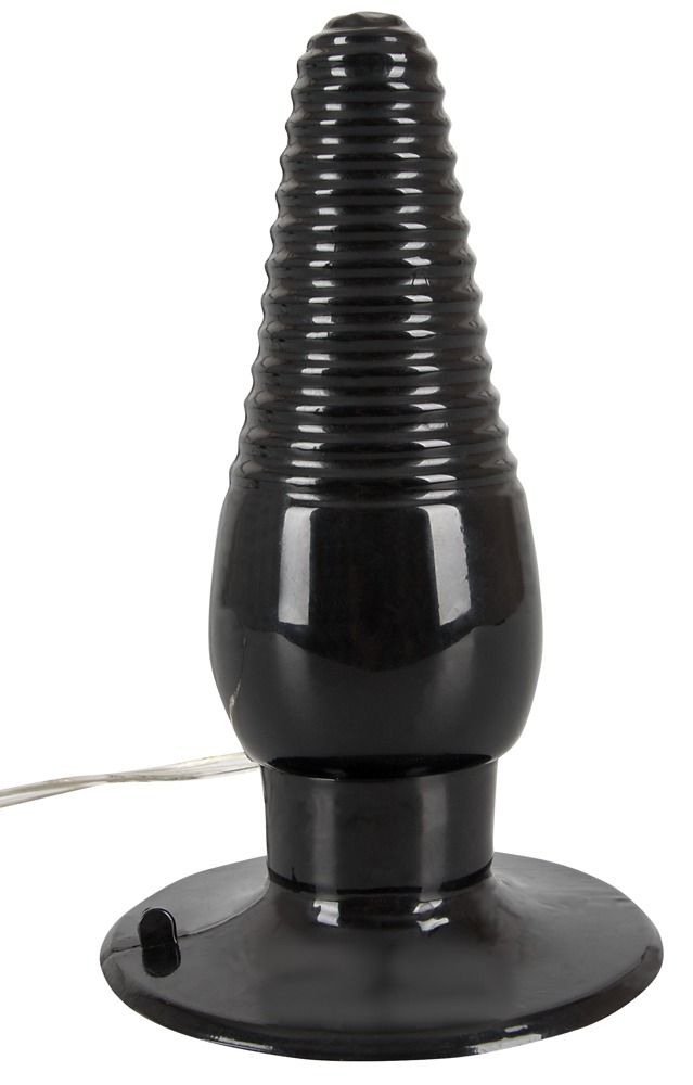 Анальная пробка с вращением и вибрацией, имеет проводной пульт дистанционного управления. Конусообразную форму и ребристую поверхность. Рабочая длина - 11,5 см.